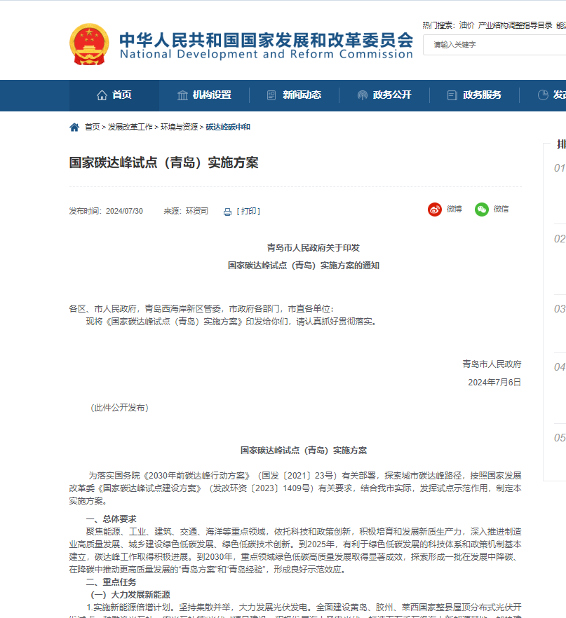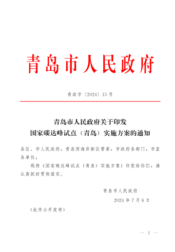 以市政府名义印发《国家碳达峰试点(青岛)实施方案》。围绕试点城市建设,大力推动经济社会绿色低碳高质量发展,在能源结构优化、节能、建筑、交通、绿色科技创新等方面取得显著成效。8月15日,市委常委、副市长耿涛代表青岛在2024年全国生态日山东活动上围绕国家碳达峰试点城市建设作典型经验交流发言。