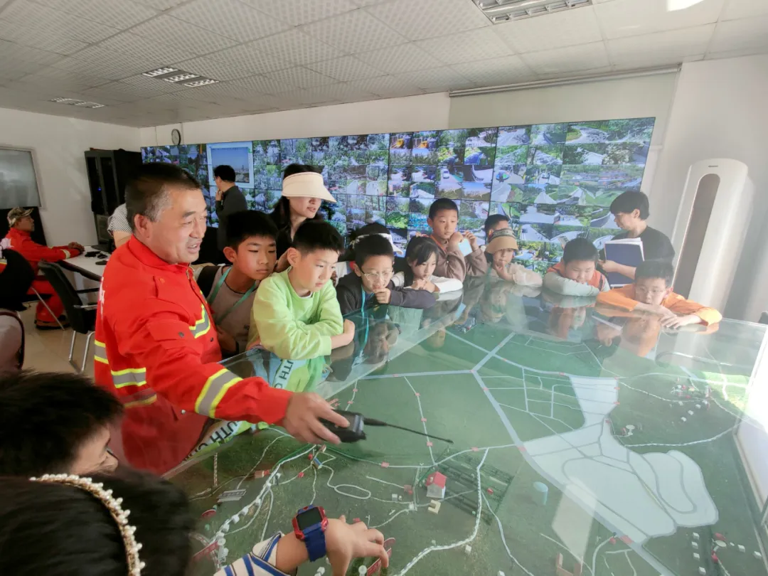 “这么多、一个个白色的小方块,代表着什么?”小记者指着指挥中心的沙盘模型问。王队长对每一个小记者的问题都耐心解答:“这是水囊,每个水囊里储存着8吨水。消防水罐有一个阀门,接上管子之后可以就近灭火。这些不同的图标代表有防火通道、瞭望塔、消防水囊、消防栓等定位信息,这些都是遍布浮山的森林防火基础设施建设情况、重点地理标识、以及水源地的分布情况。”王队长介绍说。