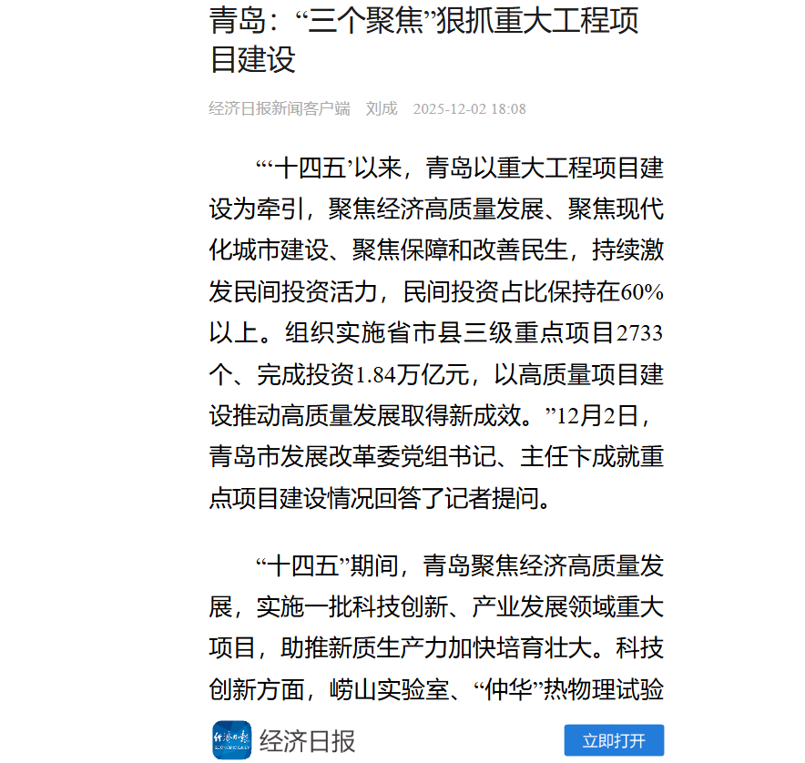 五是城乡建设展现新面貌。首部“多规合一”的国土空间总体规划获批,青岛都市圈获批建设,常住人口城镇化率达到78.87%。在省内率先实现“县县通高铁”,高速公路通车里程保持全省第一,地铁运营里程达到352公里、较“十三五”末增加106公里。累计改造老旧小区1584个,改造城中村260个。浮山、太平山等山体公园全面开放,新建城市绿道687公里、口袋公园378处。粮食和重要农产品稳产保供能力位居全国大中城市前列,率先提出并践行“片区化”推进乡村振兴。