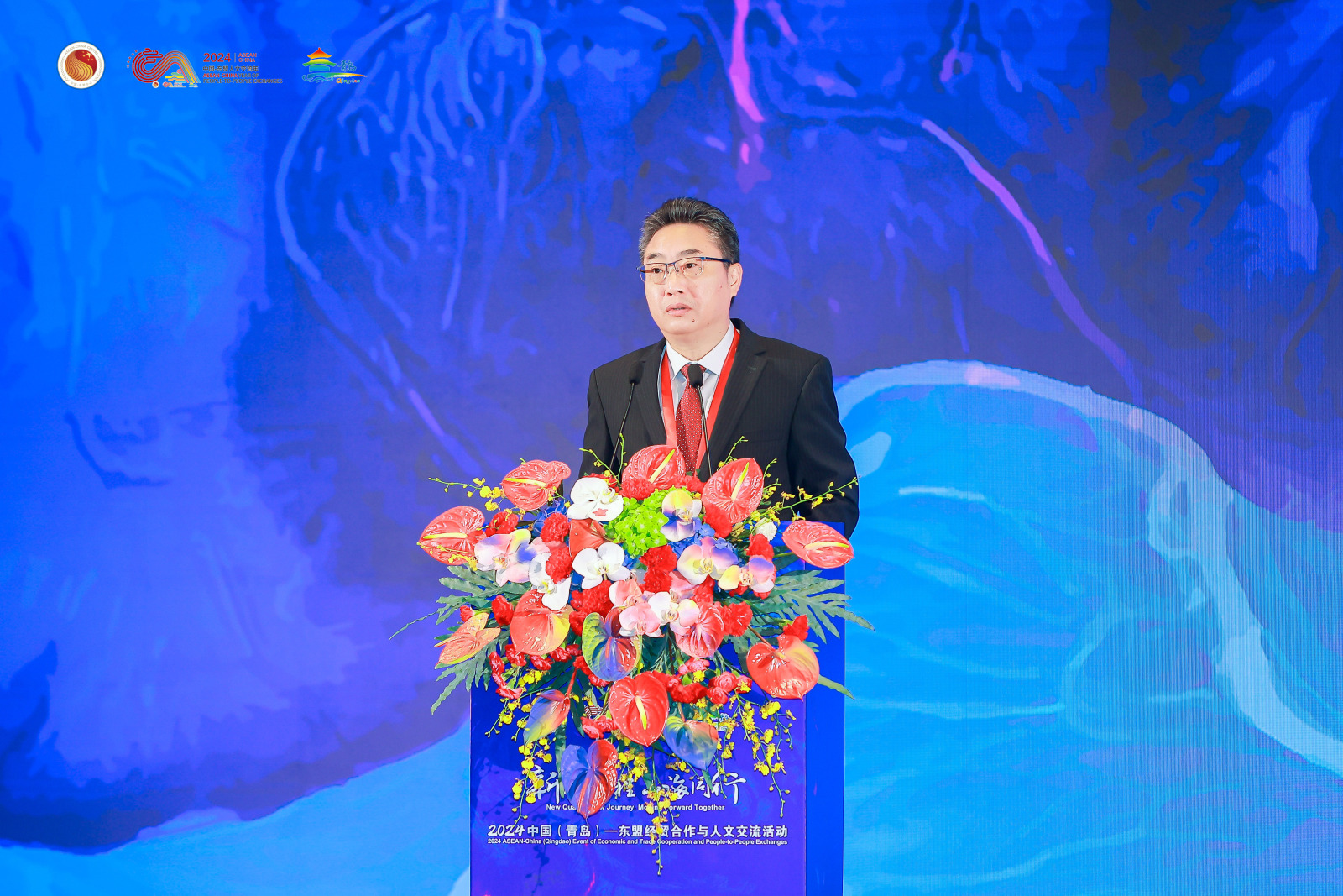 赵豪志在致辞中表示,青岛是中国沿海重要中心城市,是“一带一路”节点支点城市,区位优势突出,产业基础坚实,开放特色鲜明,宜居宜业宜游。当前,全市上下正深入学习贯彻习近平主席视察山东重要讲话精神,全面深化改革开放,加快建设现代化国际大都市。东盟是青岛重要的经贸合作伙伴和扩大高水平对外开放的重点方向。我们将以此次活动为契机,持续加强双方重点产业对接,扩大双向贸易规模,深化科技、教育、文旅等领域交流,努力推动合作取得更加丰硕的成果。
