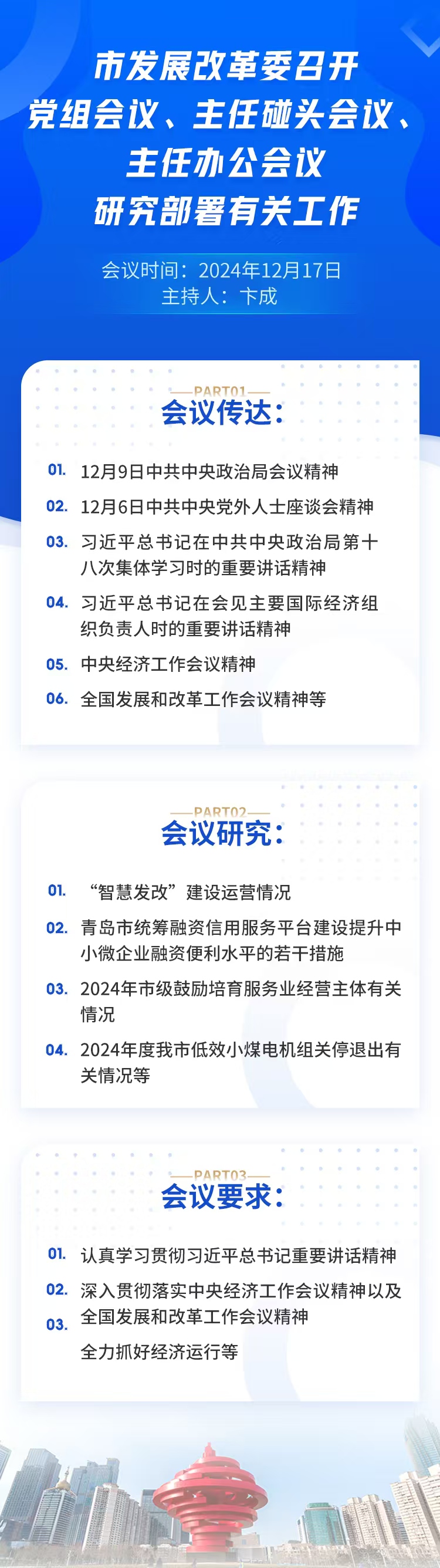 一图读懂|市发展改革委召开党组会议、主任碰头会议、主任办公会议,研究部署有关工作