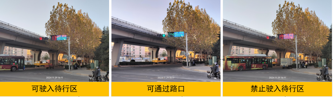 4.同步完善标志标线,增设待行区提示屏,引导驾驶员驶入和驶出待行区。