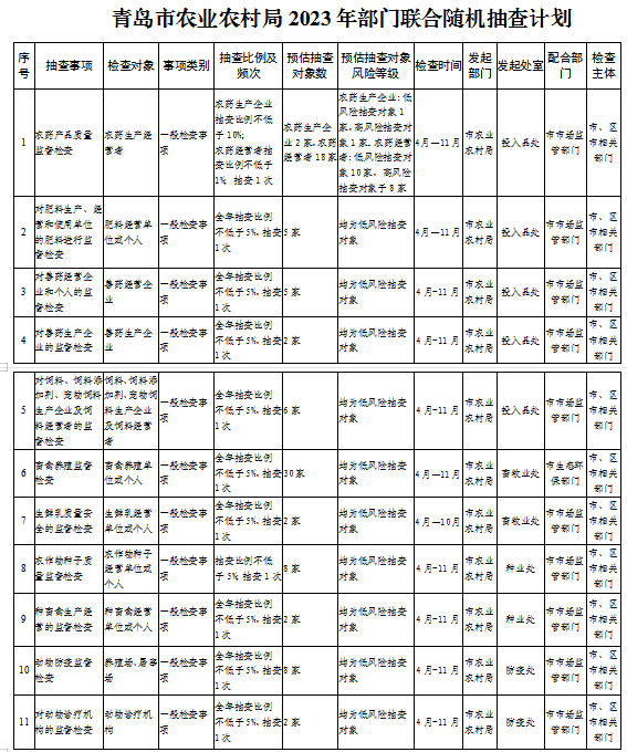 2.青岛市农业农村局2023年部门联合随机抽查计划