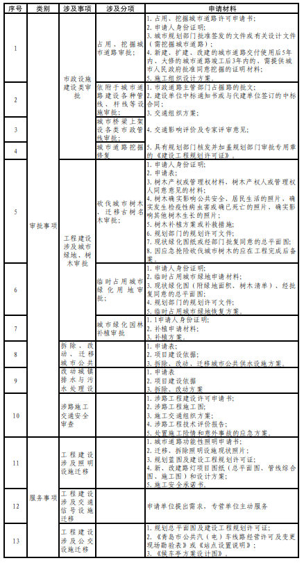 青岛市高效办成道路挖掘修复(含道路开口)“一件事”事项清单