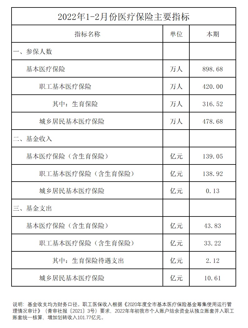 2022年1-2月份医疗保险主要指标