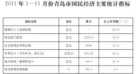 2011年1-11月份青岛市国民经济主要统计指标