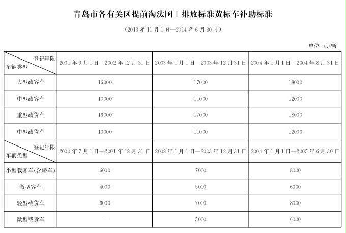 附件:1.青岛市各有关区提前淘汰国 Ⅰ 排放标准黄标车补助标准(2013年11月1日—2014年6月30日)