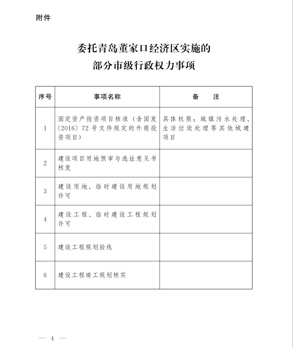 附件:委托青岛董家口经济区实施的部分市级行政权力事项