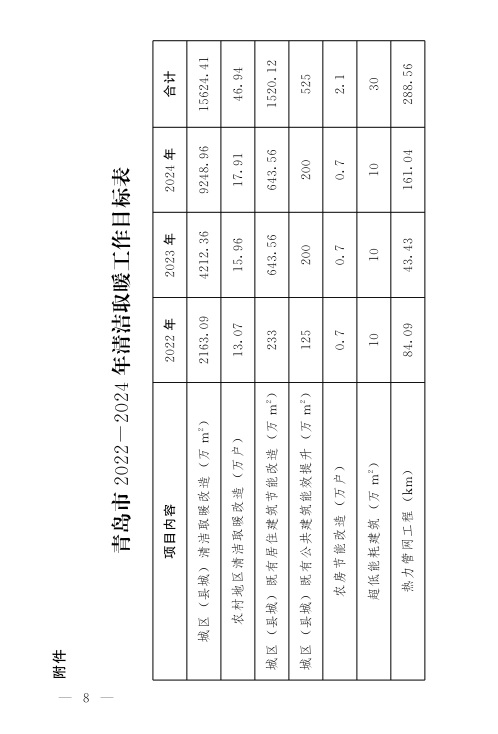 附件:青岛市2022-2024年清洁取暖工作目标表