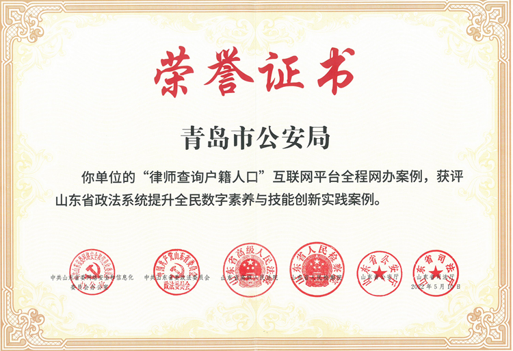 日前,在省委网信办、省委政法委、省高级法院、省检察院、省公安厅、省司法厅联合举办的全省政法系统提升全民数字素养与技能案例征集活动中,户政处申报的“律师查询户籍人口”获评创新实践案例。